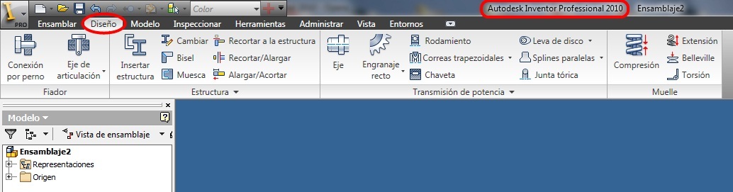 Creo recordar que hasta la versión 9 el Desing Acelerator era un complemento para Inventor (que se instalara aparte). A partir de la 10 y hasta la 2008, pasando por la 11, ya venía integrado dentro de Inventor. Pero en la 2009, en la 2010 y en la 2011, también está integrado dentro de Inventor, pero lo han colocado en una pestaña que se llama "Diseño". Si te fijas en la imagen que he puesto, tiene las mismas cosas que tu usas en clase, pero con un diseño mas llamativo.