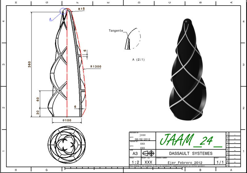 Hola que tal, trasteando por los ejercicios, tengo éste que es muy bonito de hacer pero no consigo que termine arriba más fino cómo en la lámina, ¿¿alguien sabe cómo acabarlo arriba más fino en catia??. Salu2s