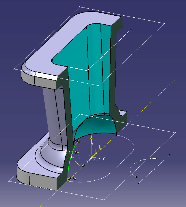 De todas formas es entretenida y "cabrona" la pieza. Por cierto, si alguno está pensando en hacer un perfil y luego hacer un barrido con otro, que se olvide. Hay un ángulo interior de 4º en una vista y de 6º en la otra o sea que opción descartada. Otra pista, hay que ir construyendo poco a poco la pieza de arriba a abajo o de abajo a arriba y utilizar mucho el ingenio.