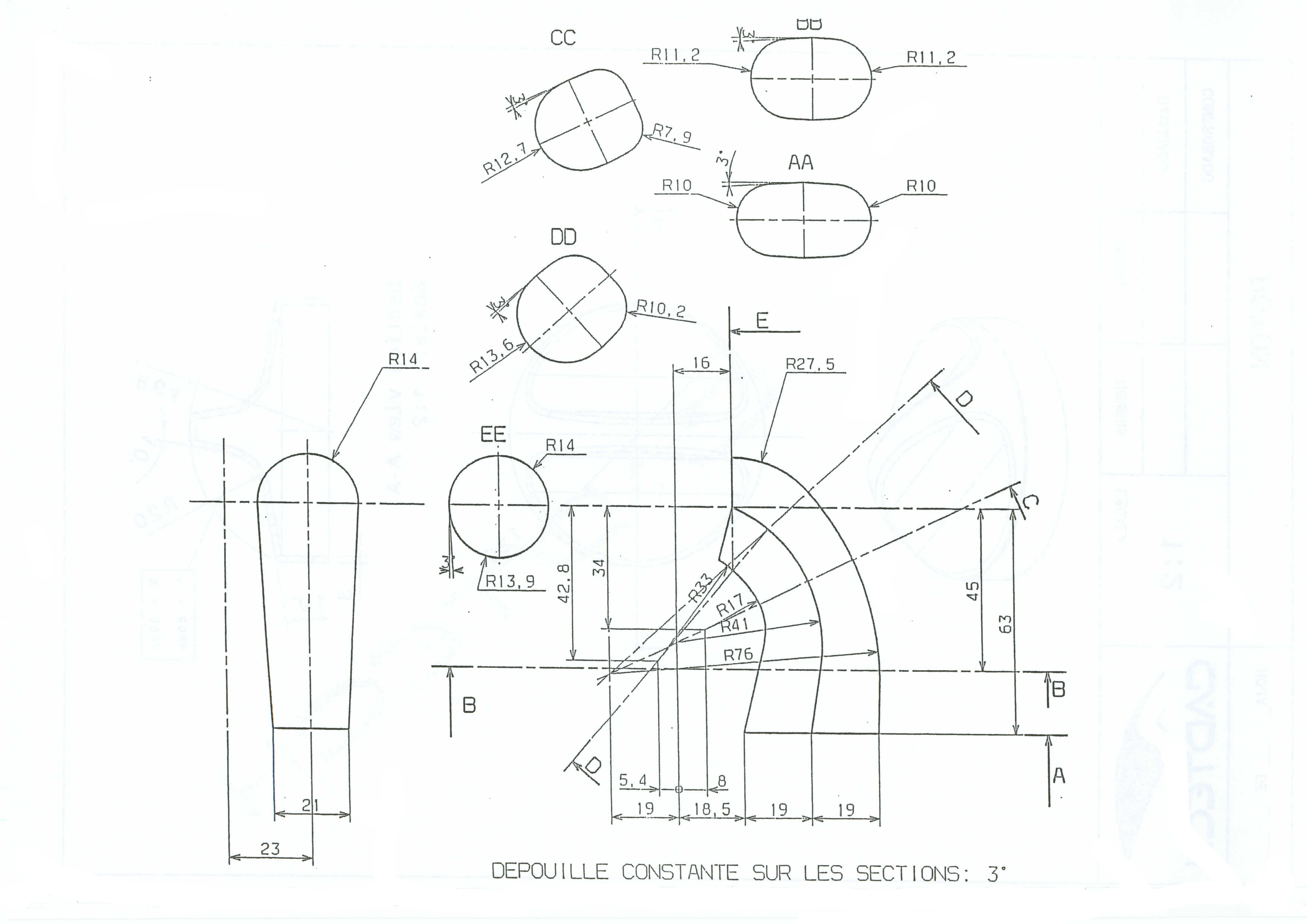 Así me he planteado yo el sketch de éste ejercicio. Luego me creé otro sketch para la vista lateral, los planos de las secciones, y lo resolví con dos multisections. No sé si será lo correcto, pero la forma se parece bastante al plano. Salu2s