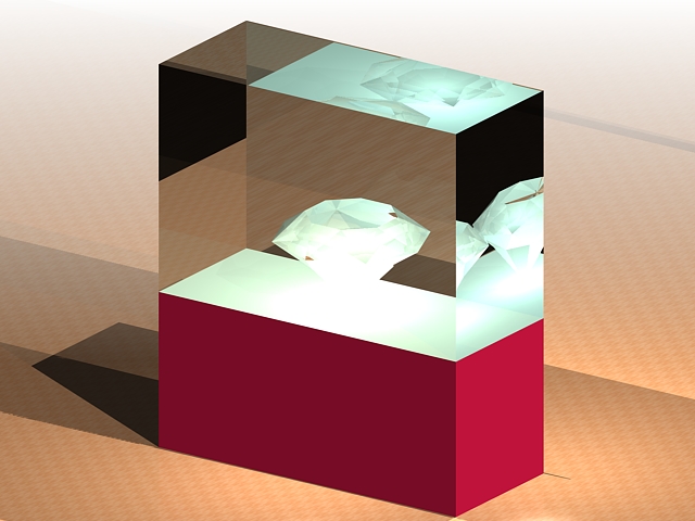 Sonevie, si lo has hecho con Autocad, IMPRESIONANTE, pero independientemente de con que soft lo has hecho, yo le veo un poco "cargado" de cristal, es decir, creo que lo de meter el diamante en una urna de cristal, es sobrecargar el render. Pero bueno, por lo menos lo has hecho, cosa que yo ni he empezado y eso que lo propuse yo.